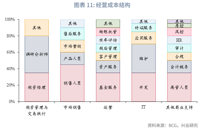 ● 销售巨头模式专注于销售、营销和运营职能,以便加强客户的服务体验、提高客户投资粘性,从而扩张并维持管理规模。成本核心在于市场销售和运营。