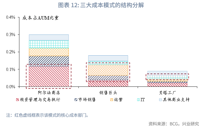 观察全球资产管理公司的发展模式,资产管理公司需要根据自身产品策略,在阿尔法商店、贝塔工厂、销售巨头等模式中选择合适的成本定位,优化核心成本部门的收入转化效率。随着行业成本竞争白热化,各模式之间的界限开始变得模糊。