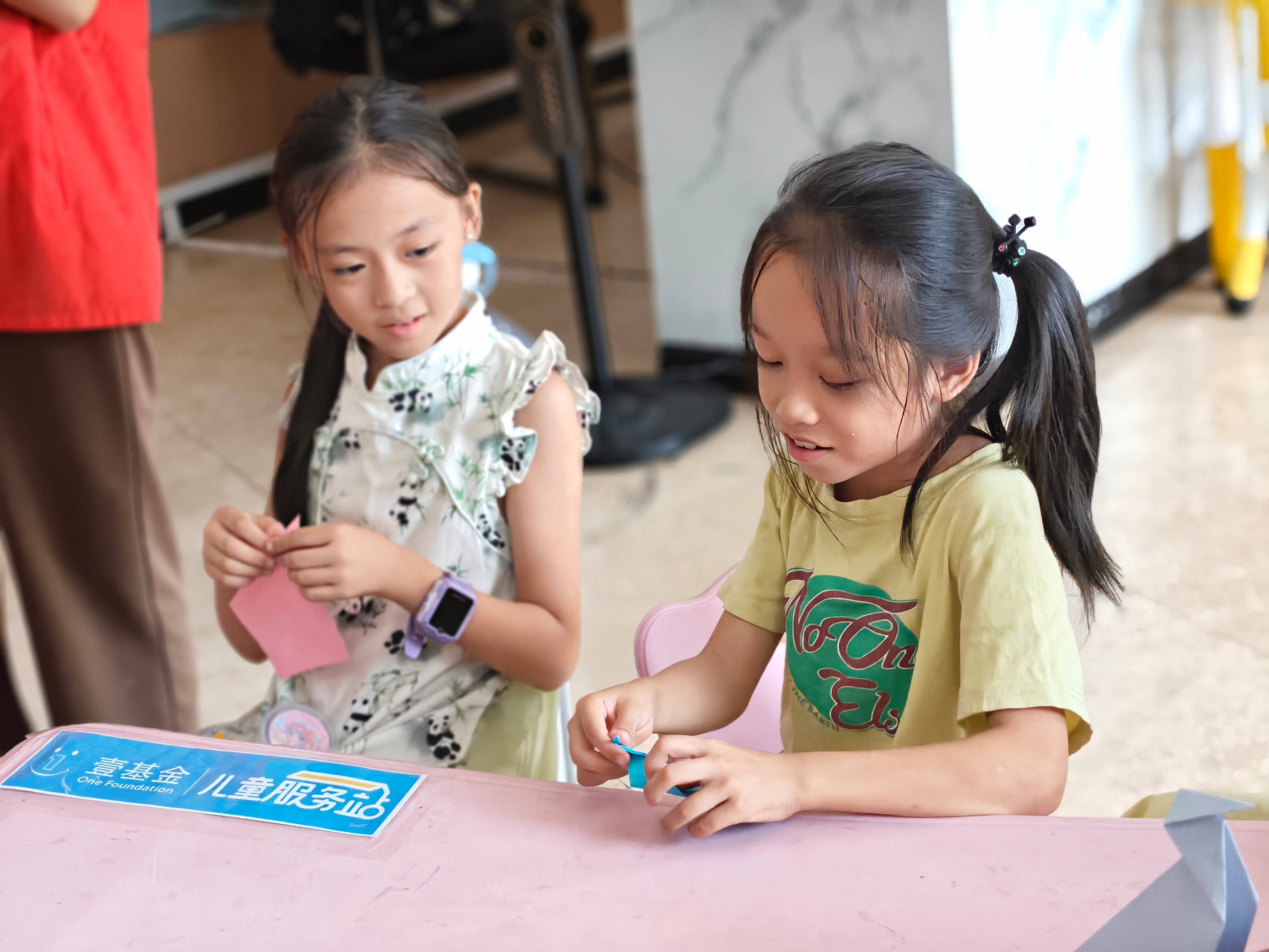 活动伊始,志愿者先进行简单的破冰互动,拉近距离。志愿者化身“孩子王”,用轻松的语言介绍自己:“大家好!今天我们要一起折“小鸭子,还要玩转呼啦圈哦!”孩子们立刻兴奋起来,叽叽喳喳地讨论着,服务站内充满了欢声笑语。