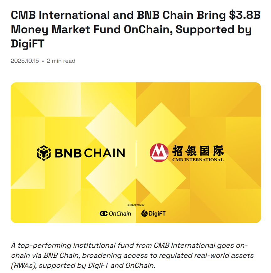 值得一提的是,招银国际此前已在Solana区块链推出首只公募货币市场基金,支持Solana、以太坊等四链部署并获香港与新加坡监管认可,此次38亿美元基金上链BNB Chain,正是其在RWA领域的进一步拓展。