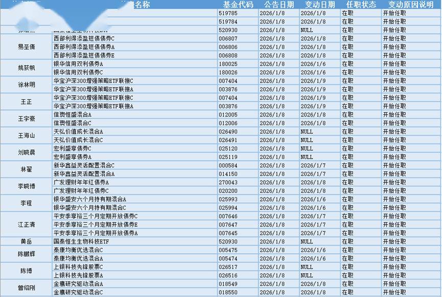 基金经理是一只基金产品最核心的成员,能决定一只基金的投资方向、投资策略以及投资风格,基金经理出色的择时选股能力和调研预测能力是基金业绩的有力保证,所以基金经理是投资者在选择基金产品时的重要依据。基金经理的变动很大程度上会影响到基金产品未来的表现,是一个需要特别关注的信息。1月8日共有24位基金经理发生任职变动。